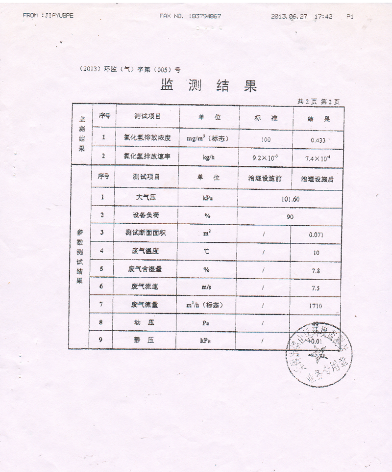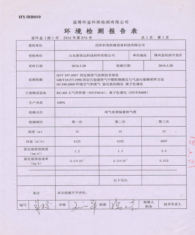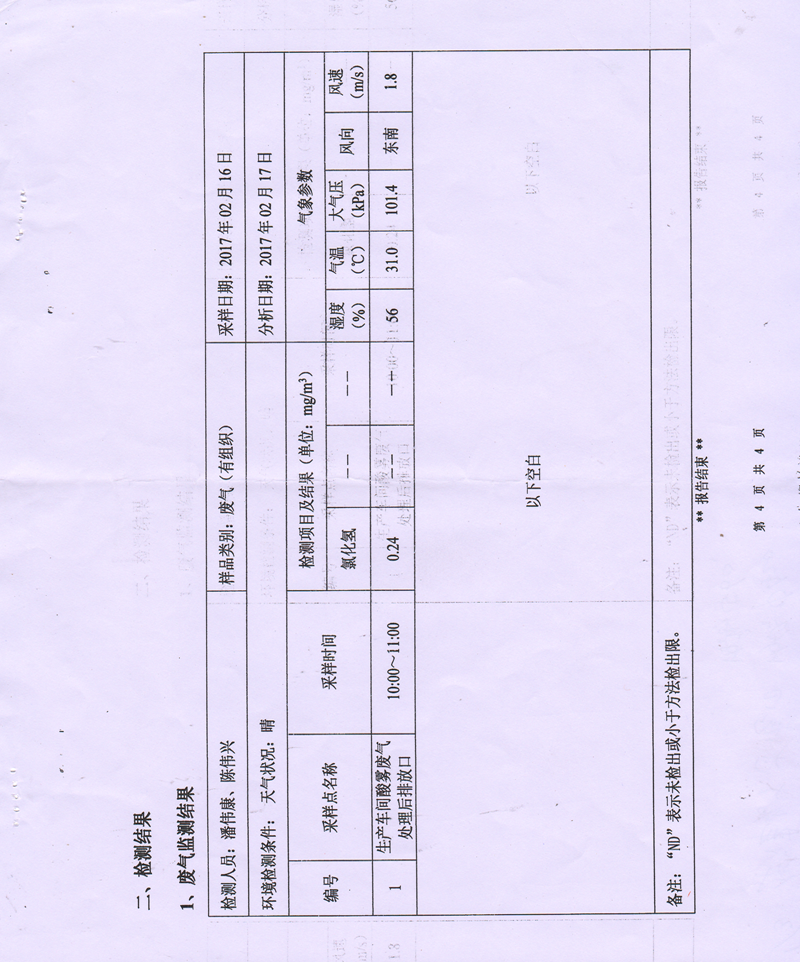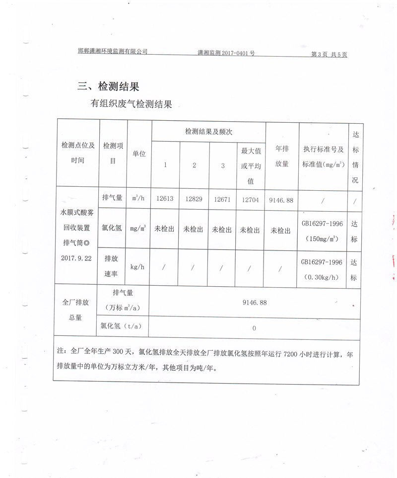 檢測(cè)結(jié)果中未檢測(cè)出HCL氣體,國家標(biāo)準(zhǔn)為小于30mg/m3